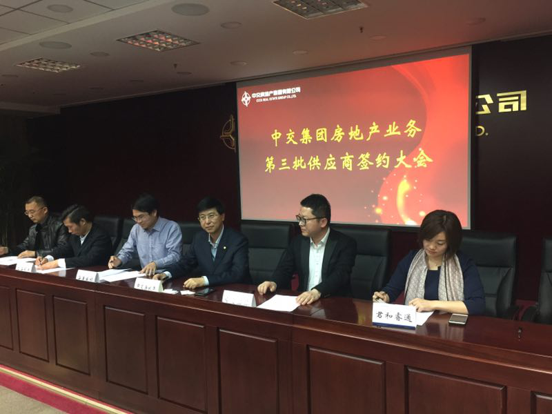 近日,中交集團(tuán)房地產(chǎn)業(yè)務(wù)第三批供應(yīng)商簽約大會(huì)在中天大廈舉行。中交房地產(chǎn)集團(tuán)董事長(zhǎng)、黨委書記為大會(huì)致辭,中國(guó)交建物資采購(gòu)管理中心總經(jīng)理出席會(huì)議并講話,中交地產(chǎn)總裁參加活動(dòng)。深圳市君和睿通科技股份有限公司(下述簡(jiǎn)稱:君和睿通)和廣東堅(jiān)朗五金制品股份有限公司(下述簡(jiǎn)稱:堅(jiān)朗)參加了中交集團(tuán)房地產(chǎn)業(yè)務(wù)第三批供應(yīng)商簽約大會(huì),與中交集團(tuán)簽約了戰(zhàn)略集采合作協(xié)議,成功納入央企中交集團(tuán)戰(zhàn)略供應(yīng)商庫(kù)。中交房地產(chǎn)集團(tuán)有限公司(下述簡(jiǎn)稱:地產(chǎn)集團(tuán))在以后的項(xiàng)目實(shí)施中,將采用君和睿通與堅(jiān)朗的智慧社區(qū)與智能家居產(chǎn)品、樓宇對(duì)講系列產(chǎn)品以及智慧社區(qū)和智能家居集成解決方案。