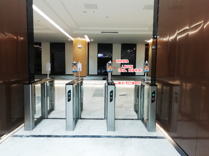 控制閑散人員進出,控制進出小區(qū)人流,全新AI測溫防控人行通道整體解決方案,采用高端智能通道閘+人臉識別儀+測溫模塊的完美組合套裝,部署在社區(qū)重點區(qū)域出入口,對人員進行體溫監(jiān)測及智能分析,實現(xiàn)“非接觸”、“戴口罩人臉識別”、“精確測溫”、“高溫預(yù)警”、“快速通行”等功能,為疫情防控提供行之高效的智能通行解決方案。此方案可有效切換疫情防控狀態(tài)的封閉管理狀態(tài),對出入小區(qū)居民和車輛進行無接觸式的人臉識別核實登記身份,同時測量體溫,并對身份異常和體溫異常的人員進行隔離和上報。